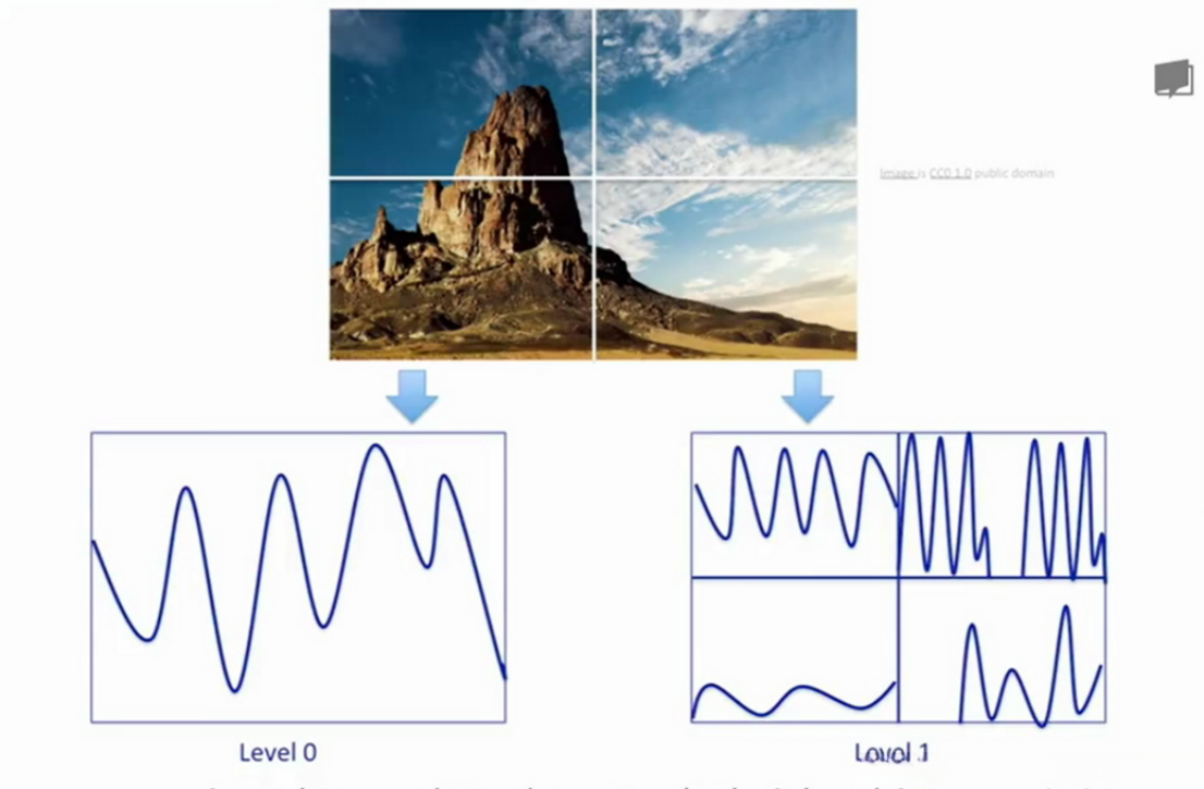 这里有一个算法作为例子,叫做空间金字塔匹配,背后的思想是图片里面有各种特征,这些特征可以告诉我们这是哪种场景,到底是风景还是厨房,这个算法从图片的各部分,各像素抽取特征,并把他们放在一起,作为一个特征描述符,然后在特征描述符上做一个支持向量机。