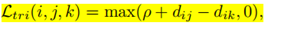 由loss函数可以看出,当dik-dij>ρ时,有0>ρ+dij-dik,loss函数恒为0,不会进行优化;当dik-dij<ρ时,有0<ρ+dij-djk,loss=ρ+dij-dik,会尽量减小dij而增大dik。