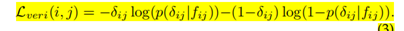 fij=(fi-fj)2,式中各符号定义如上文所示,p(δij|fij)表示Verification网络将fij识别为δij(0/1)的概率(这个Verification网络可能是一个以fij为输入的二分类神经网络,具体的现在不知道,以后看论文)。