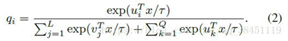 其中两式中的τ控制了概率分布的平缓程度,实验中设置为0.1(其中的vi和ui我感觉应该都会做个标准化标为单位向量,具体的没有读论文,此处只为猜测)。优化目标设置为: