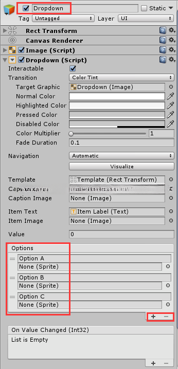 [Unity][UGUI]DropDown下拉框监听改变值的事件