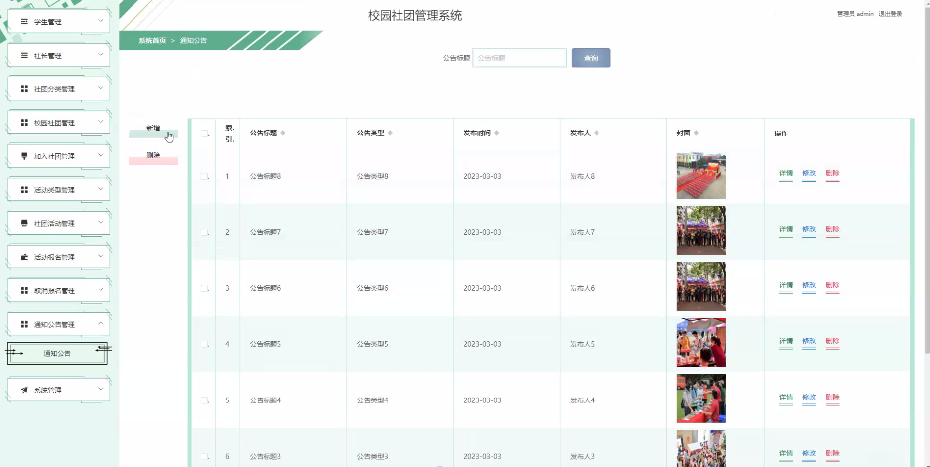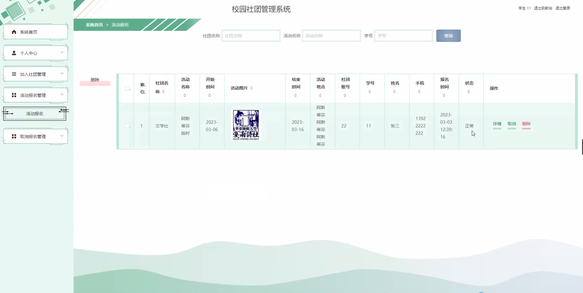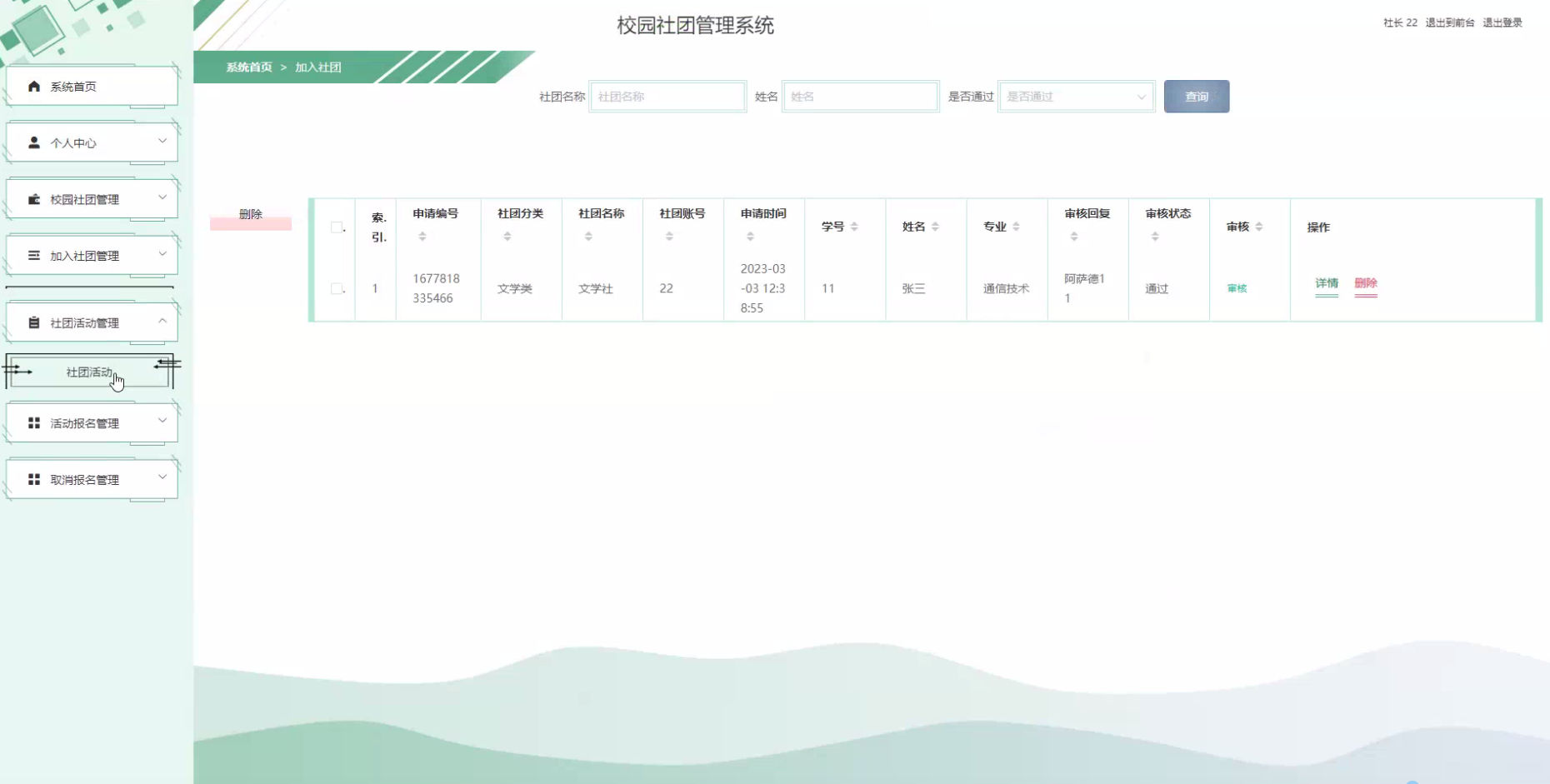 研究目的:本研究的目标是开发并构建一个功能完善且操作简便的校园社团管理系统, 以便更好地服务于学生、社长及学校管理层, 满足他们的需求。该系统旨在提升校园社团管理的自动化与智能化水平, 为此我们特意为其打造了两个核心模块:一是为学生提供了便捷参与各类社团活动的空间, 二是则为管理层提供了高效的监管系统, 共同推动校园社团文化的繁荣发展