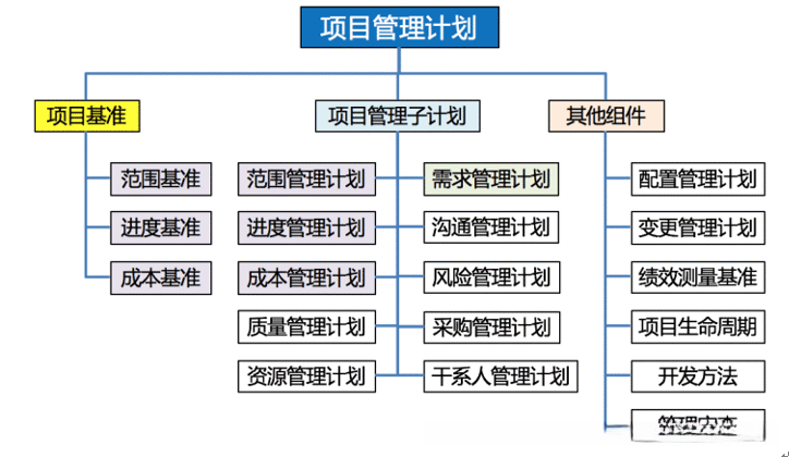 代表子计划与基准标准的一种重要组成部分,在项目管理中通常包括范围管理计划、进度管理计划以及成本管理计划等具体措施。