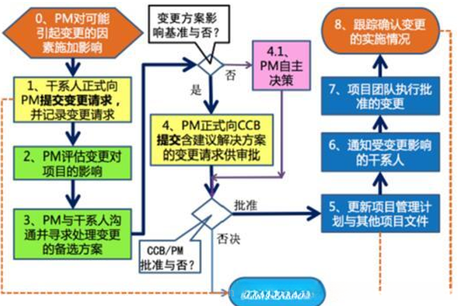 1)干系人正式向PM 提交变更请求,并记录变更请求;