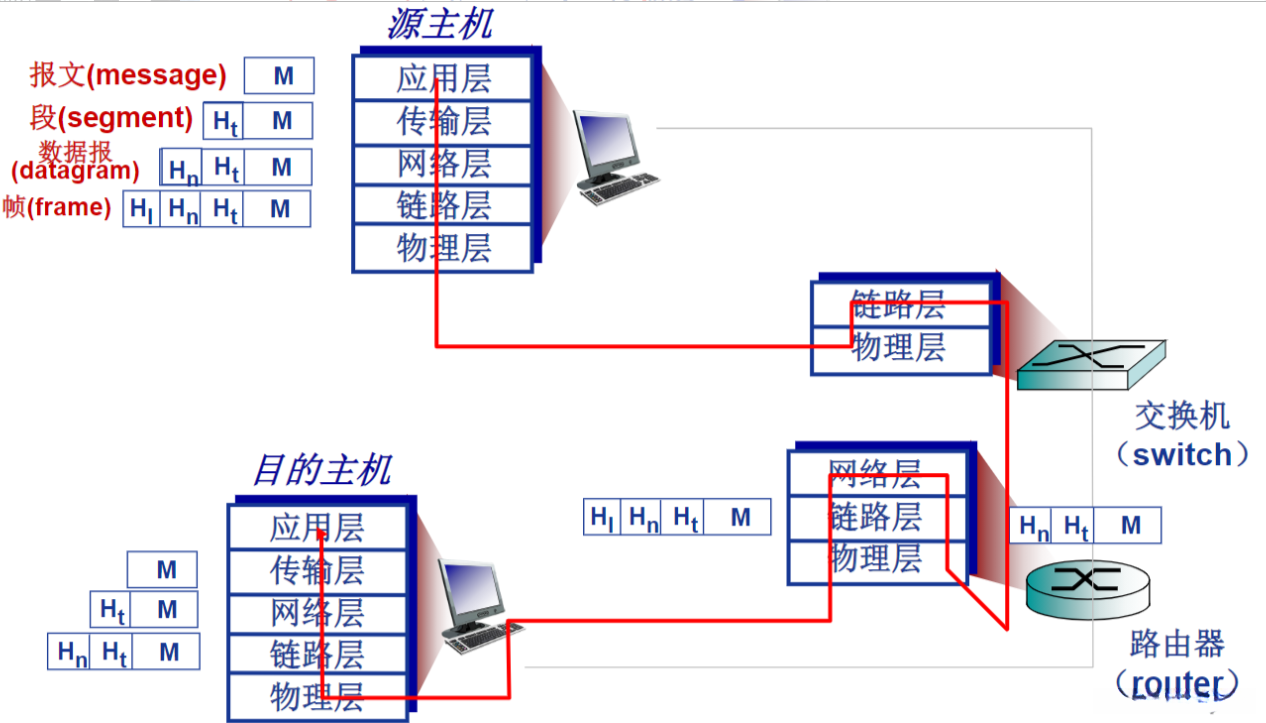这里借用别的大佬的一张图片,具体链接如下计算机网络——分层的体系结构(OSI模型/五层协议栈)_计算机网络分层结构_Unstoppable~~~的博客-博客