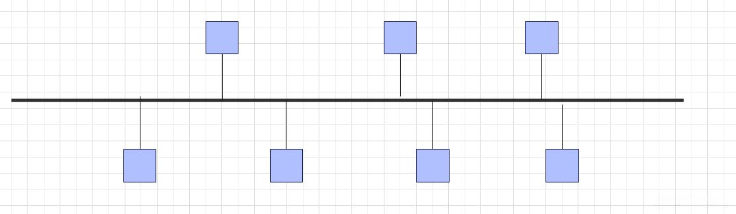 总线型:构建简单,但是负载压力大,效率不高,一个节点出现问题会导致整个网络瘫痪