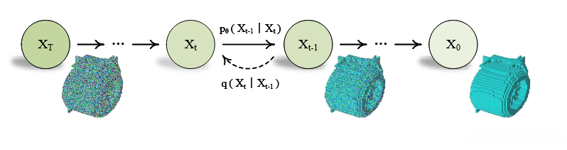 大多数现有的扩散模型优先分析全局结构,依赖于预定义的数据集类别,不足以准确地解决复杂三维场景的复杂细节。因此,本研究将去噪扩散概率模型( DDPM ) [5]与稀疏标注(3DU - Net) [ 6 ]架构中的学习稠密体分割相结合,开发了一个定制的三维扩散模型,用于局部三维场景生成驱动的理解。与先前的全局或局部单结构分析相比,本研究中定制的3D扩散模型显示出出色的能力,可以整合空间上下文信息,准确地预测噪声张量分布,通过使用马尔可夫链Monte Carlo( MCMC ) [ 7 ]采样和变分推断方法,逐步恢复清晰的结构细节,最终将几何特征内化为先验知识,从而促进局部3D场景理解的生成。