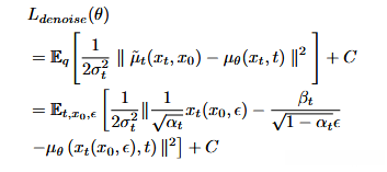 其中,\widetilde{\mu }_{t}为预测均值,C为与\theta无关的常数项,逐渐恢复出清晰的原始数据。