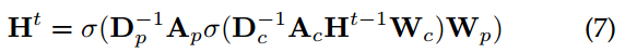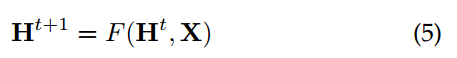 - h按照迭代更新机制不断被公式1重新计算,经过T个时间步的迭代更新后达到稳定状态,满足H(T)=H.