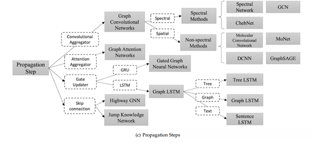 Convolution**:** GCN将卷积操作应用于图结构的数据上,并主要可分为Spectral method和Spatial Method两种方法。这些方法都旨在对节点及其相邻节点的信息进行收集。