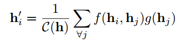 i是输出位置的序号,j代表图中所有可能存在的位置的序号.函数f(⋅)用于计算i号节点与j号节点之间的距离.函数g(⋅)表示输入节点隐状态的变化情况.最后得到的结果经过归一化处理.