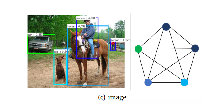 本研究聚焦于图(Graph)数据所承载的丰富语义关联信息。在处理文本、图像等非结构化数据时进行复杂推理学习,如句子的语法结构关系、图像中的场景关系等任务,均需依赖于高效的图推理模型。图网络(Graph neural networks)是一种基于链接的模型架构,在节点间信息传递中捕捉复杂依赖关系。近年来,图卷积网络(Graph Convolutional network)和门控图网络(Gated graph neural network)在多个领域取得了显著的应用成果。