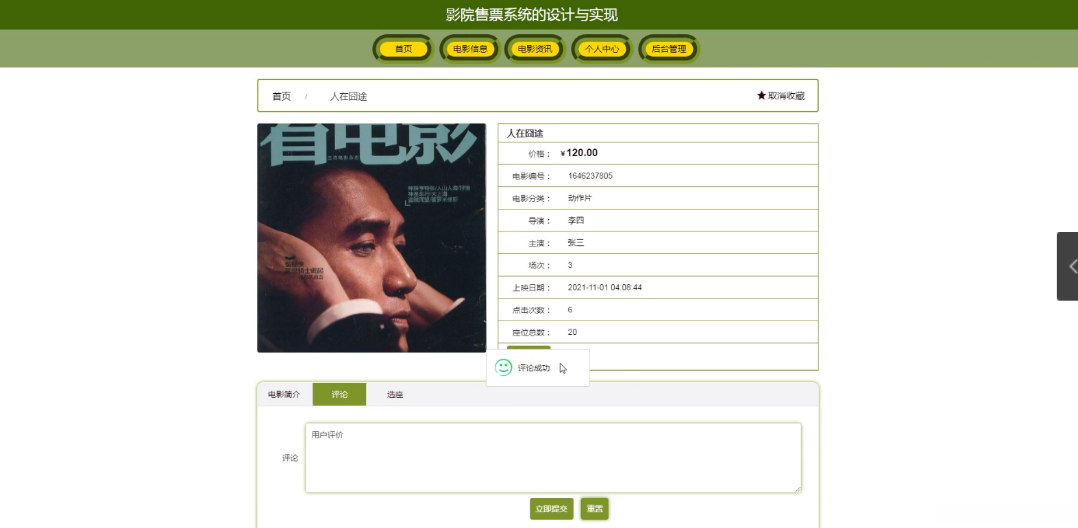 影院售票系统的设计与实现(JSP+java+springmvc+mysql+MyBatis)