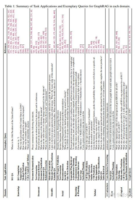 论文总结了 GraphRAG 在多个领域的应用,包括: