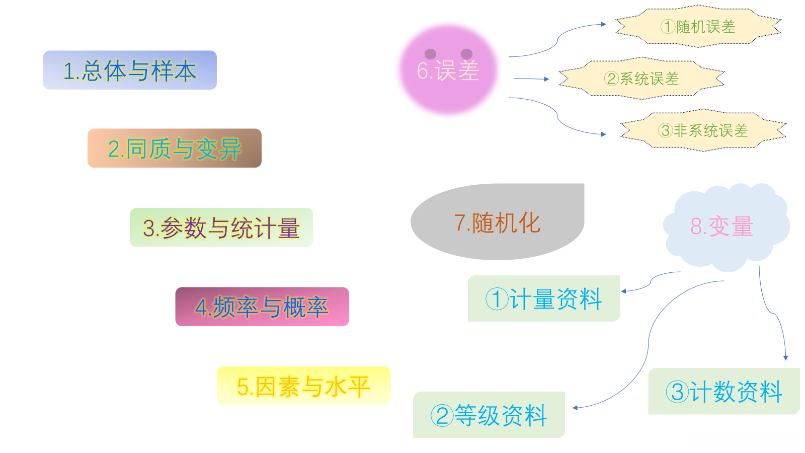 了解并掌握统计学相关基本概念为后续正确地选择统计方法进行相关数据处理、分析以及得到合理推断的关键。本篇推文将着重梳理医学统计学相关的核心概念。