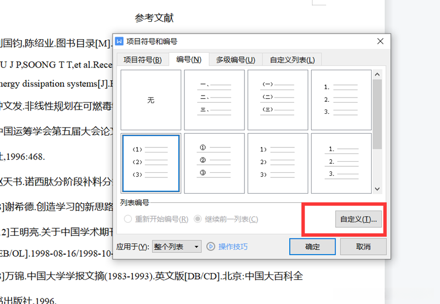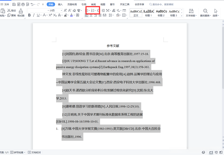 在添加参考文献的编号的时候要用自动添加的方式,不要手动添加了,这里选中自己列出的参考文献
