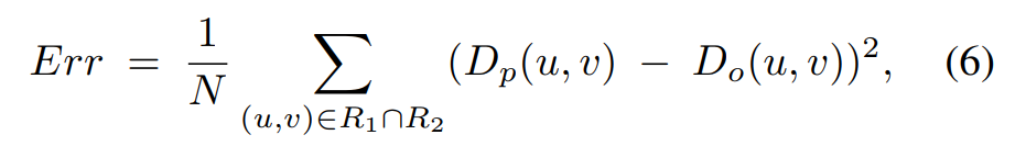 我们用Do(u,v)和Dp(u,v)分别表示像素位置(u,v)处的实际深度值与投影后的估计深度值。令R1 ∩ R2为两张图像重叠区域的点云集合,则N代表该区域内点云的数量。