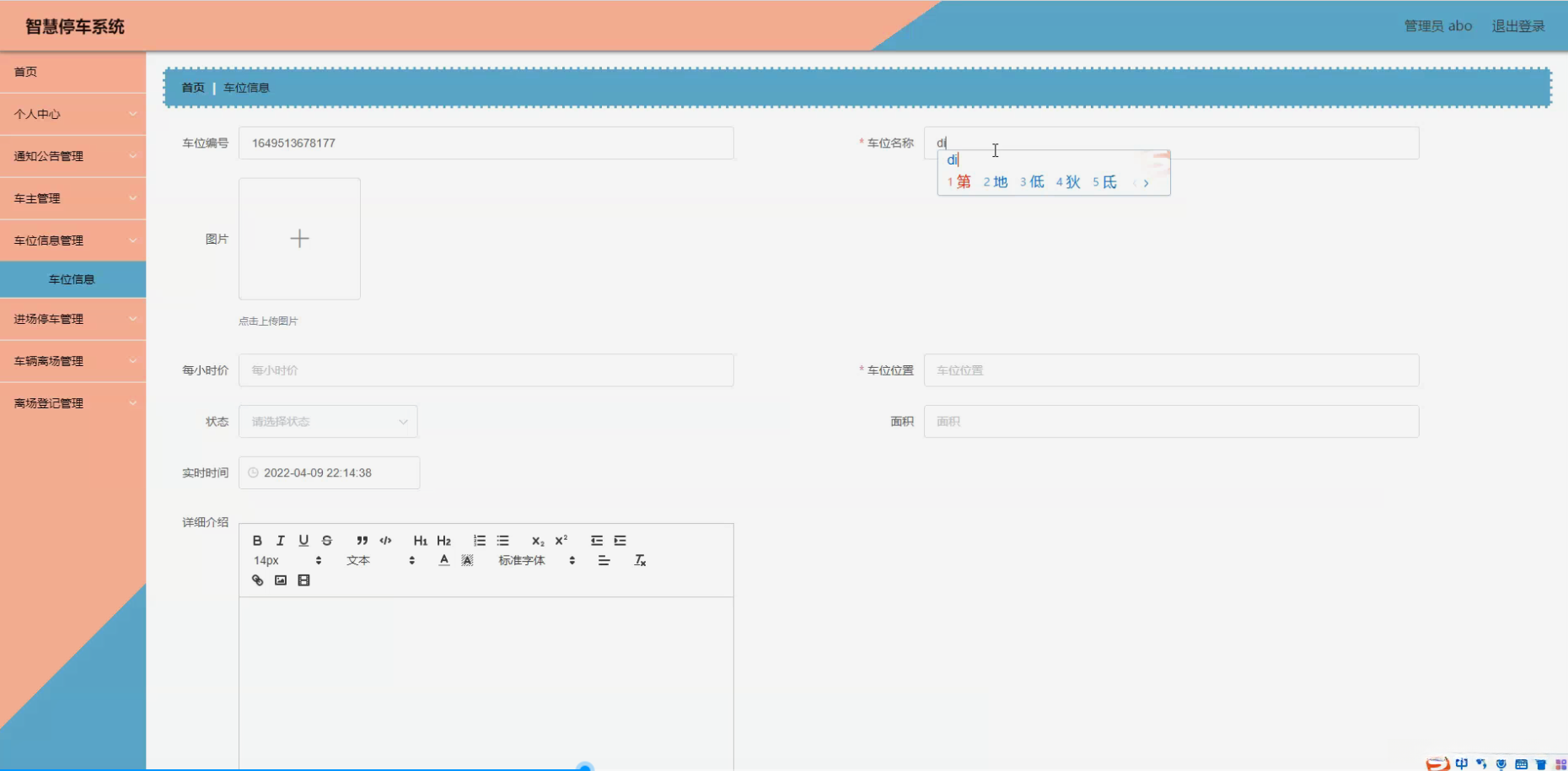 - 车位信息管理 :实时监测车位状态,包括空闲车位数量、位置等信息,实现车位信息的实时更新与共享。
