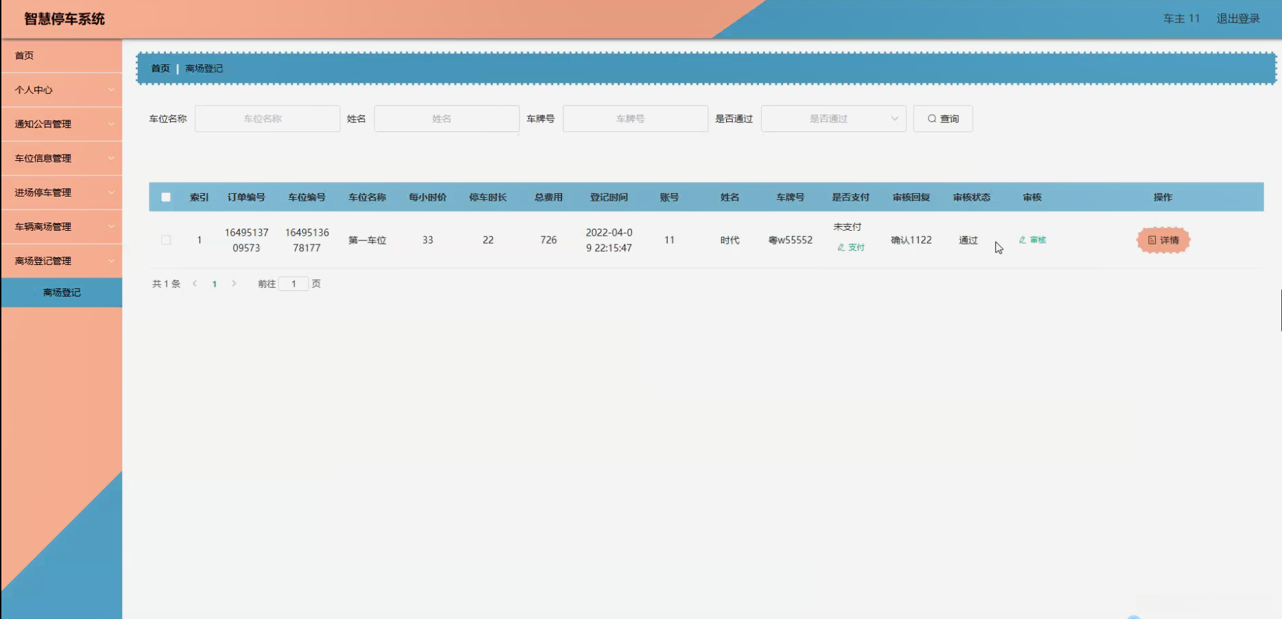 - 进场停车与离场登记 :设计智能化的进出场流程,支持车辆快速进场、离场及费用自动结算等功能,提高停车效率。