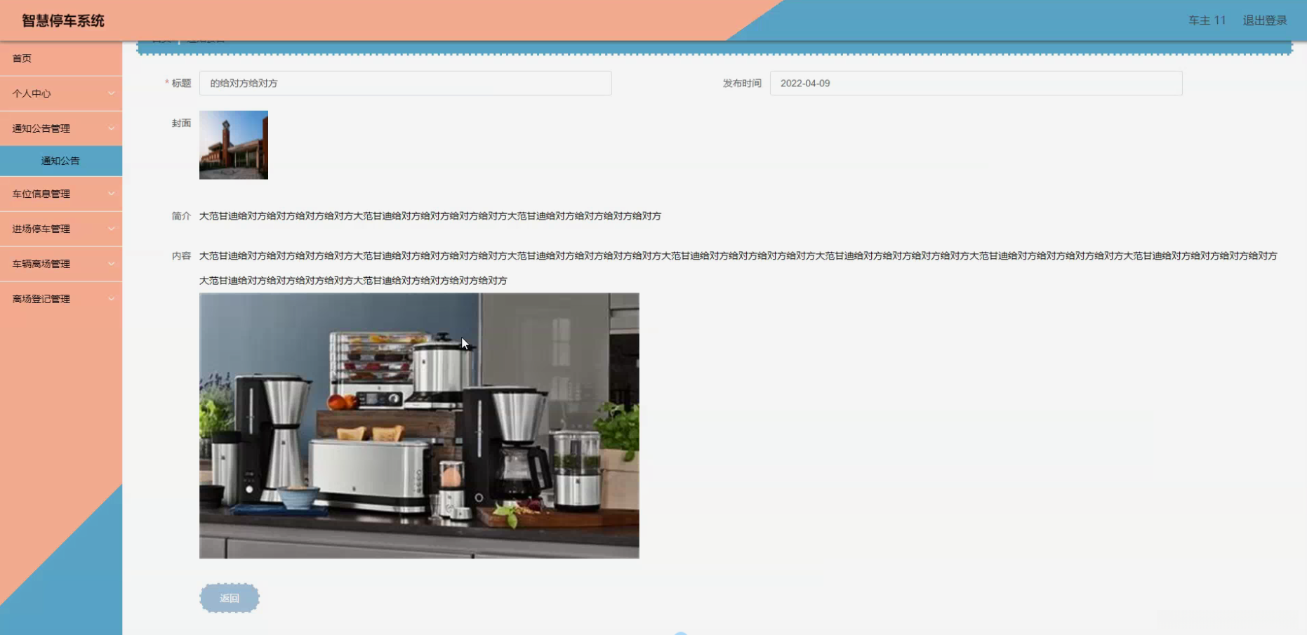 - 通知公告发布 :及时发布各类通知公告,如停车场内临时活动、车位维修等信息,确保车主及时获取相关信息。