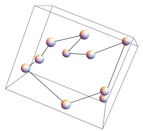 Graphics3D[{Line[p[[Last[%]]]],Sphere[p,0.5]}]