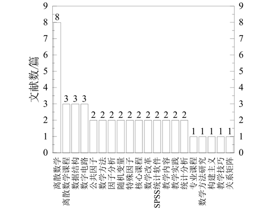 关于提升离散数学课程教学质量的研究已取得一定进展。笔者长期关注《软件导刊》这一学术平台,该刊每年都会发表大量相关论文。从2007年至今,每年发表的论文数量及年度分布情况如图1所示,这些文章的研究重点各有不同,具体分析可见图2。