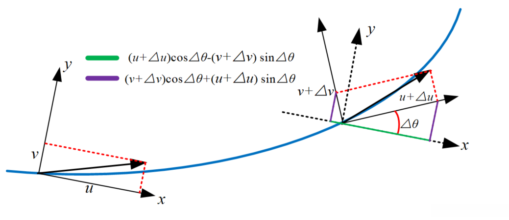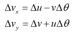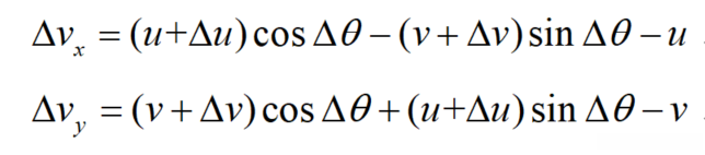 基于全局坐标系中,在两个相邻时间段内观察到的车辆速度变化情况可用以下方法进行分析研究;其中xoy即为该车自身的运动参考坐标系。