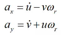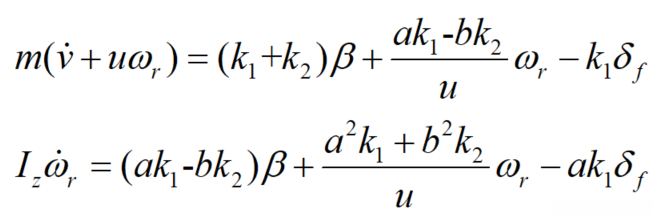 结合侧向力与力矩平衡方程,侧纵向加速度方程:
