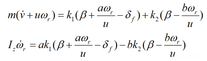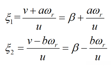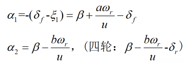 前后轴侧向力相当于轮胎侧面倾角α与侧面刚度k乘积的结果。