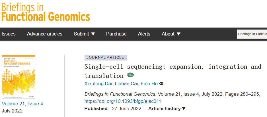 Dai X, Cai L, He F. Single-cell sequencing: expansion, integration and translation[J]. Briefings in Functional Genomics, 2022, 21(4): 280-295.