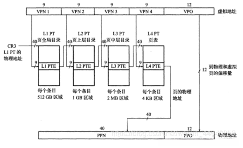 图7.7 四级页表的访址方式(Intel i7)