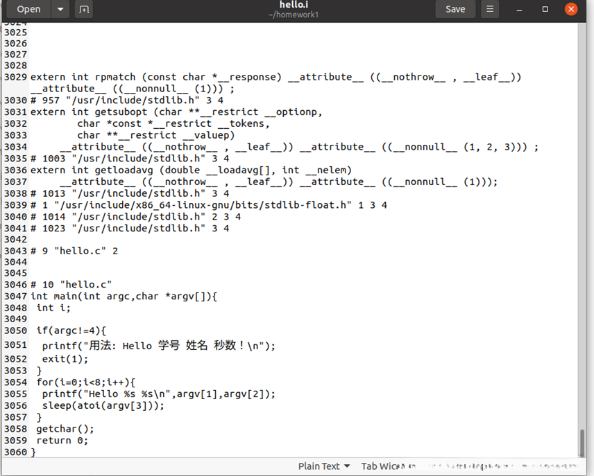 hello.i: .c文件经过预处理之后的文本文件。