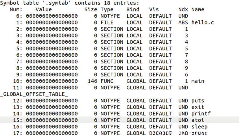 图7.1 hello反汇编文件中main函数的地址