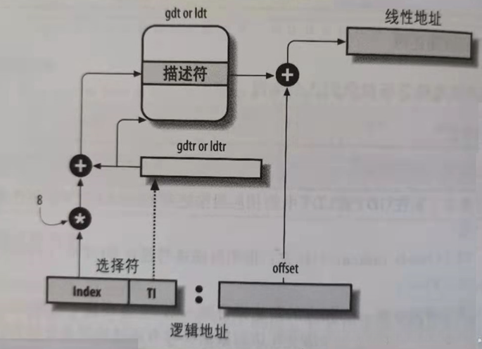 于是,从逻辑地址到线性地址的变化如下图所示: