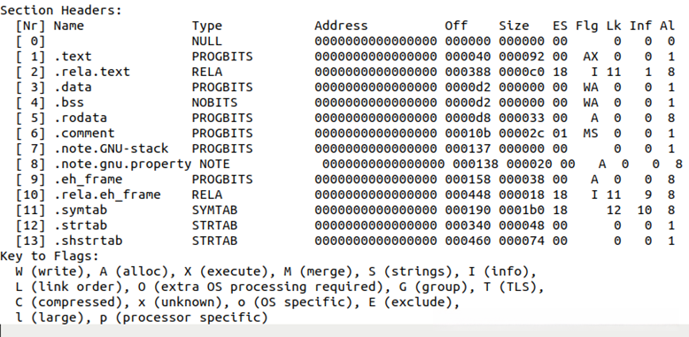 output0.txt: hello.o可重定位目标执行文件的反汇编文件。