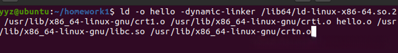 随后, 链接器负责将hello.o与其所使用的动态链接库连接起来生成hello可执行文件; 至此之后, hello已成功转化为能够独立运行的程序。