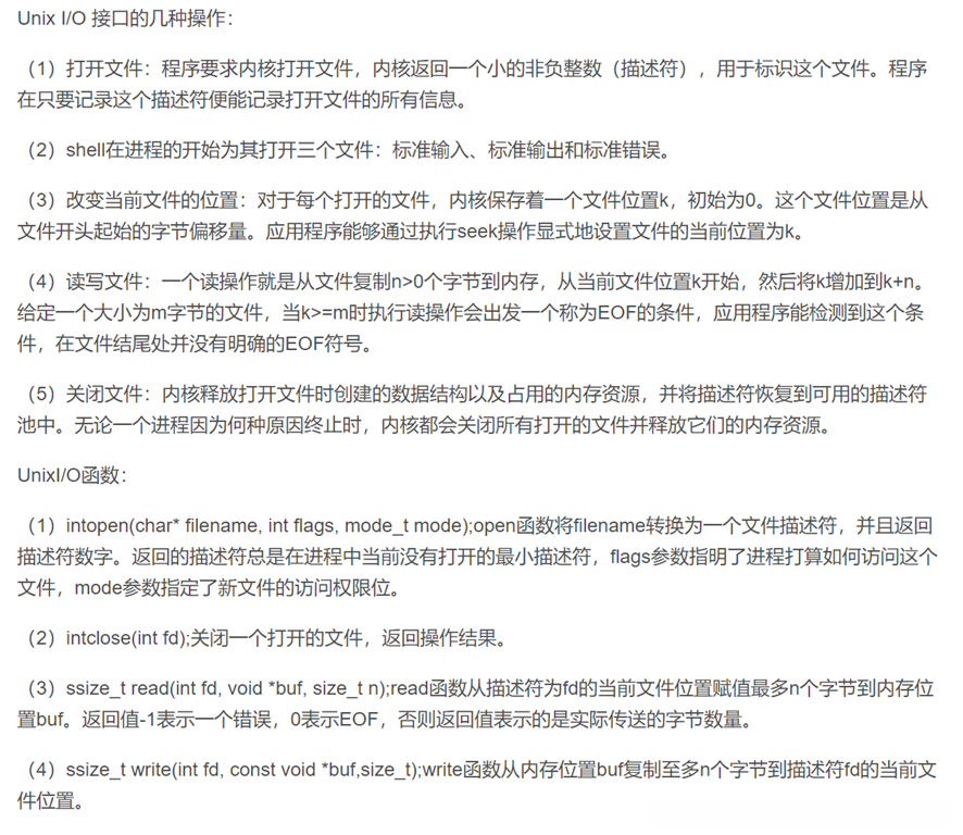8.2 简述Unix IO接口及其函数