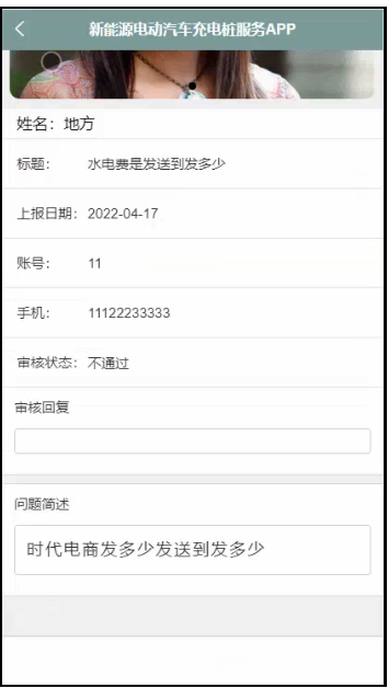 通过故障上报界面,在该页面上可查看用户的基本信息包括名称、问题标题、提交时间、登录账户、联系电话、审批状态以及审批结果反馈等内容;如图5-6所示。