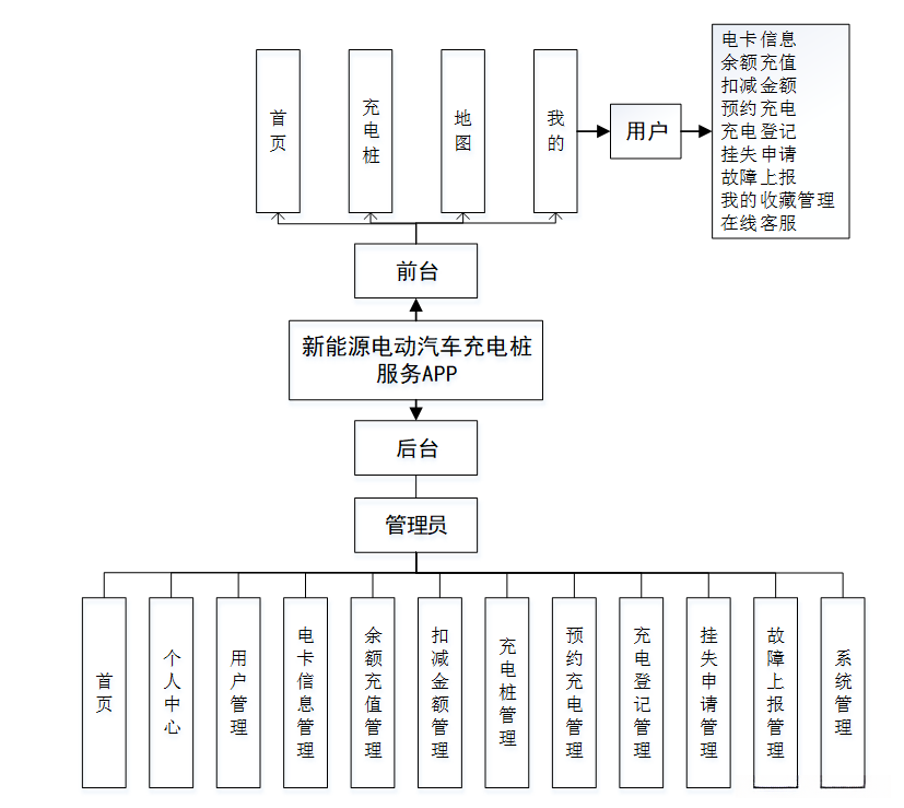 该款新能源电动汽车充电桩服务APP的主要功能包含:用户登录与注册界面以及新能源电动汽车充电桩服务信息的查询与数据浏览功能。