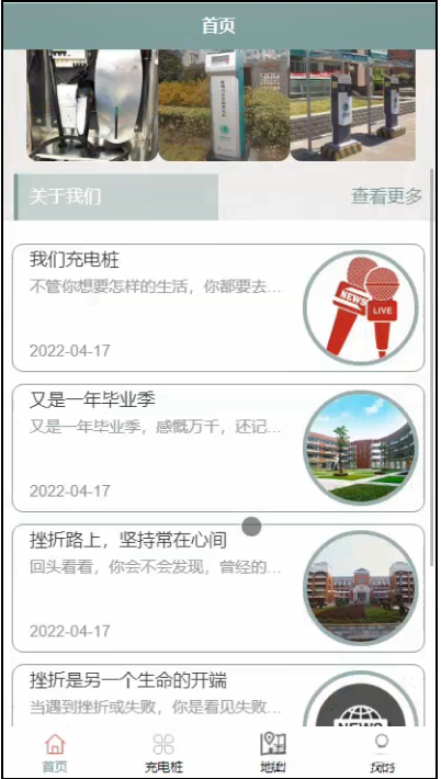 这一款新能源电动汽车充电桩服务应用程序;用户可以通过建立个人账户以便登录系统主界面来实现相应功能。具体而言,主要功能包括查看首页、充电桩位置信息、实时地图导航以及用户的个人记录等。