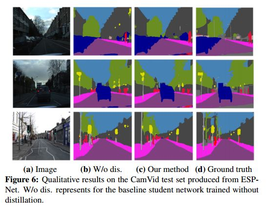 研究了用于训练精确紧凑语义分割网络的知识提取策略。