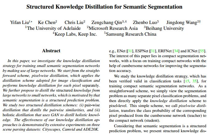 CVPR2019| 亚洲微软研究院、阿德莱德论文:结构知识蒸馏应用语义分割