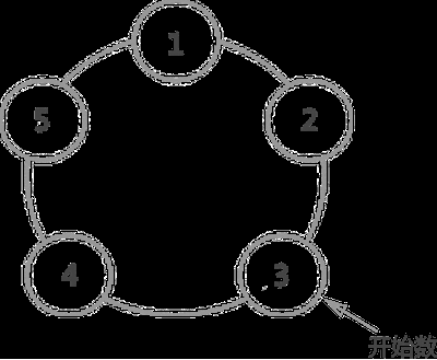 接着在逆时针方向寻找下一位参与者,在第3个位置处数2人后,则第3人退出。