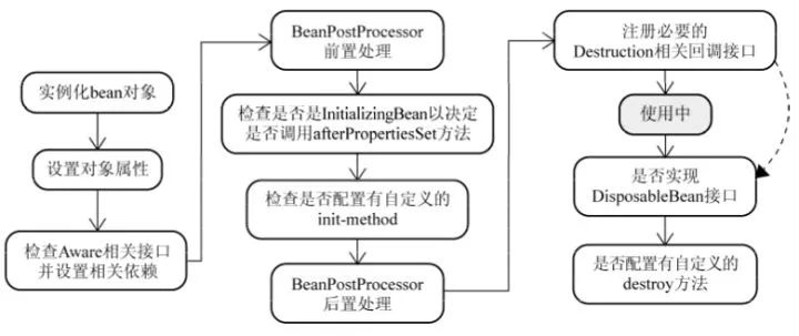 但具体来说,Spring Bean的生命周期包含下图的流程: