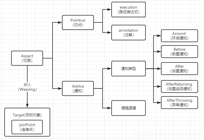 (2)切面(Aspect):抽象出的通用组件能够横切多个对象。Aspect切面相当于Pointcut切点与Advice通知的结合体,由多个Pointcut切点与Advice通知组合而成。