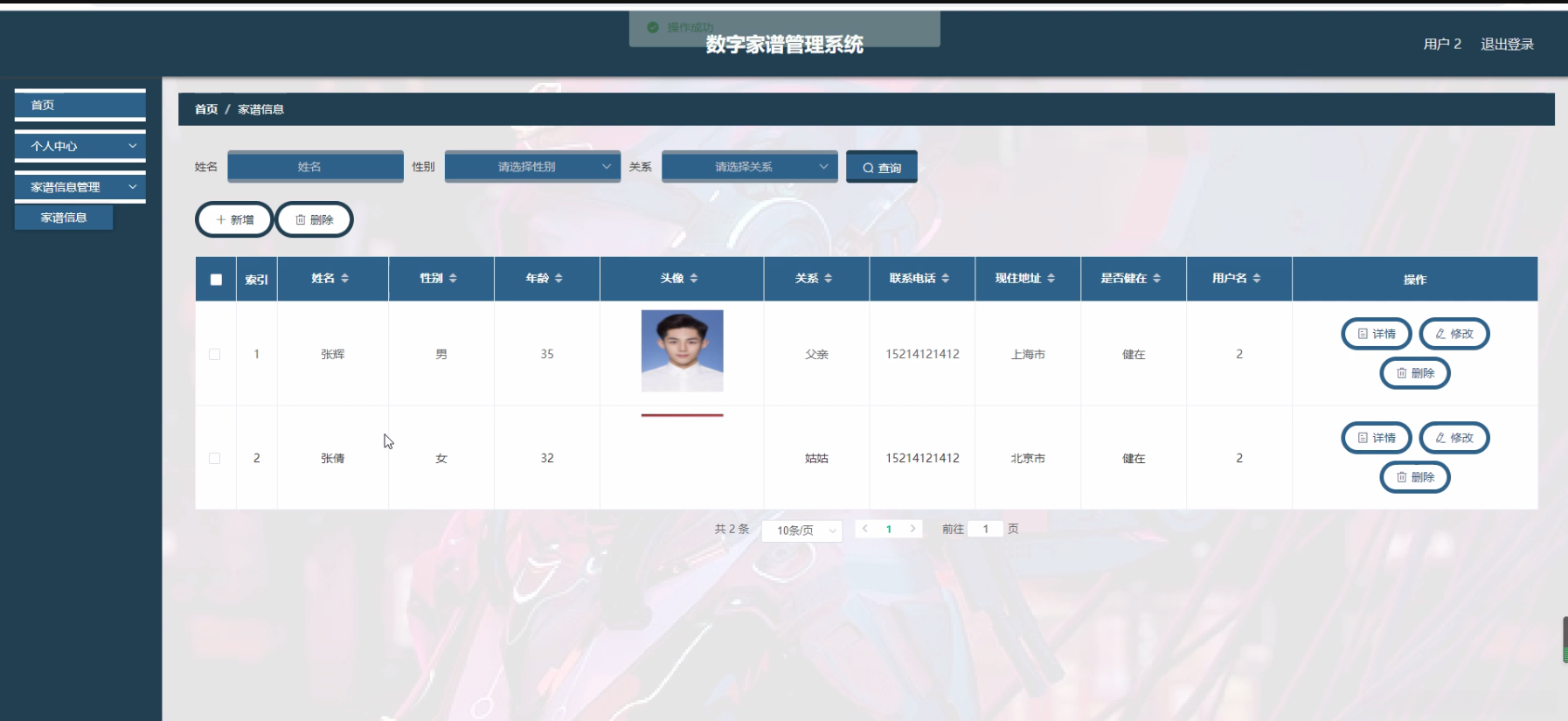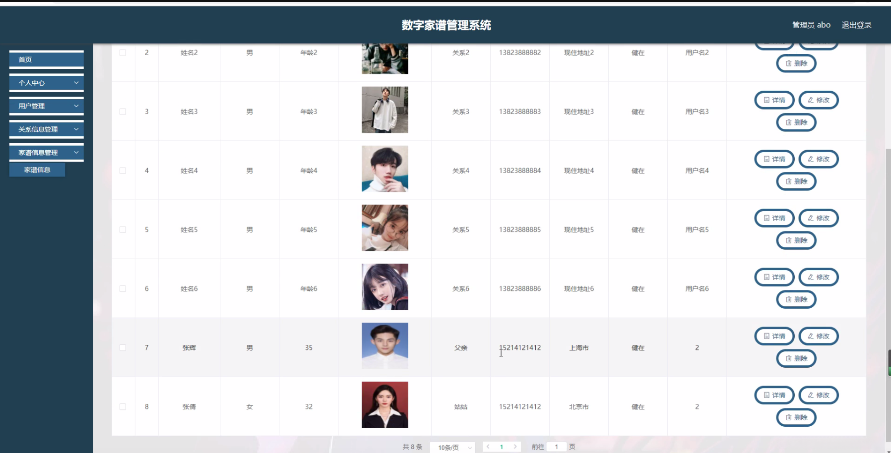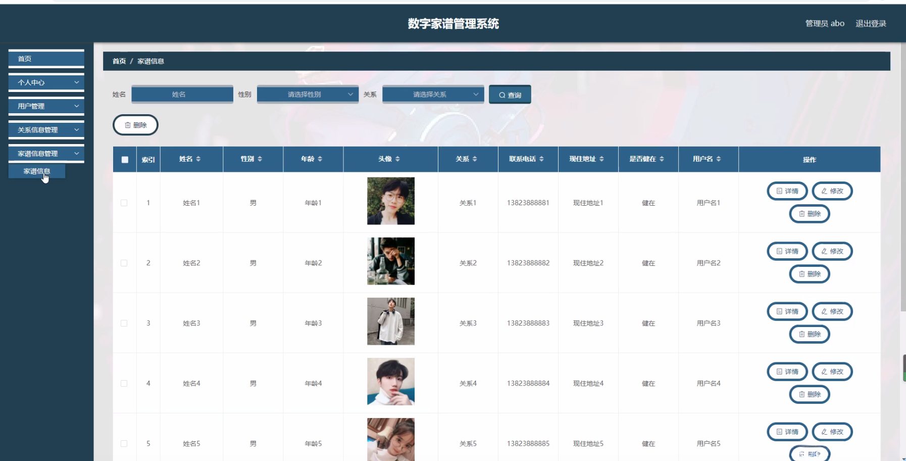 数字家谱管理系统还能方便进行家族成员的信息管理和更新。传统的纸质家谱往往需要手动维护和更新,工作量大且容易出错。而数字家谱管理系统可以提供便捷的信息录入和修改功能,使得家族成员的信息始终保持最新和准确。同时,系统还可以支持搜索和筛选功能,方便用户查找特定的家族成员信息。