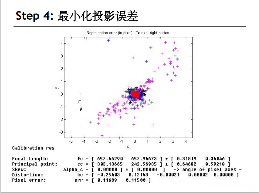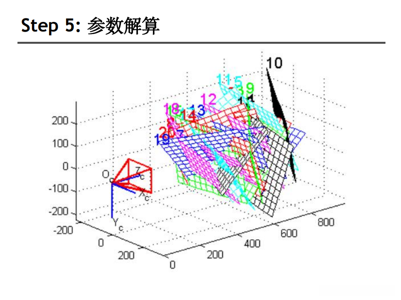 - 基于已知的几何信息(如固定长度的棋盘格)实现参数求解.