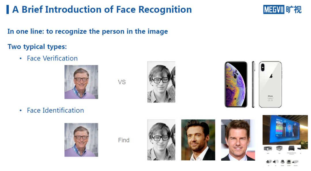 今天的分享主题是人脸识别,即如何让机器来识别人的身份,它有两个典型应用:(1)人脸认证,即用算法判别两张图像是否是同一个人;(2)身份查询,即匹配查询的图像与候选解。