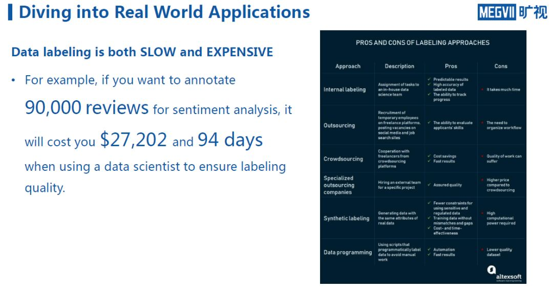 这里图中显示的例子是文本标注,人脸标注也是如此,大家可以想一下,作为人类我们在认知熟悉的人脸时精度很高,但是当遭遇陌生人我们往往很难在短时间内分辨其特征。而为了提升算法的性能,往往需要对很多相似的陌生人进行标注,这个过程会消耗大量的成本。