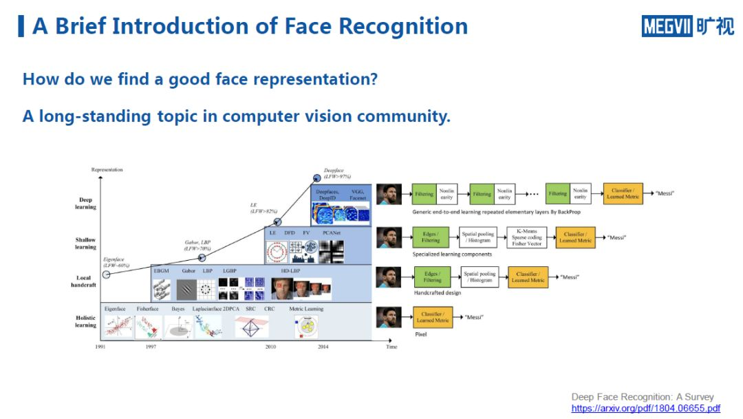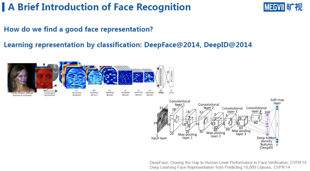 比较早期的工作可以追溯到2014年,一个是Facebook的DeepFace,另一个是香港中文大学的DeepID。二者致力于让系统找到更好地学习人脸特征的方法。